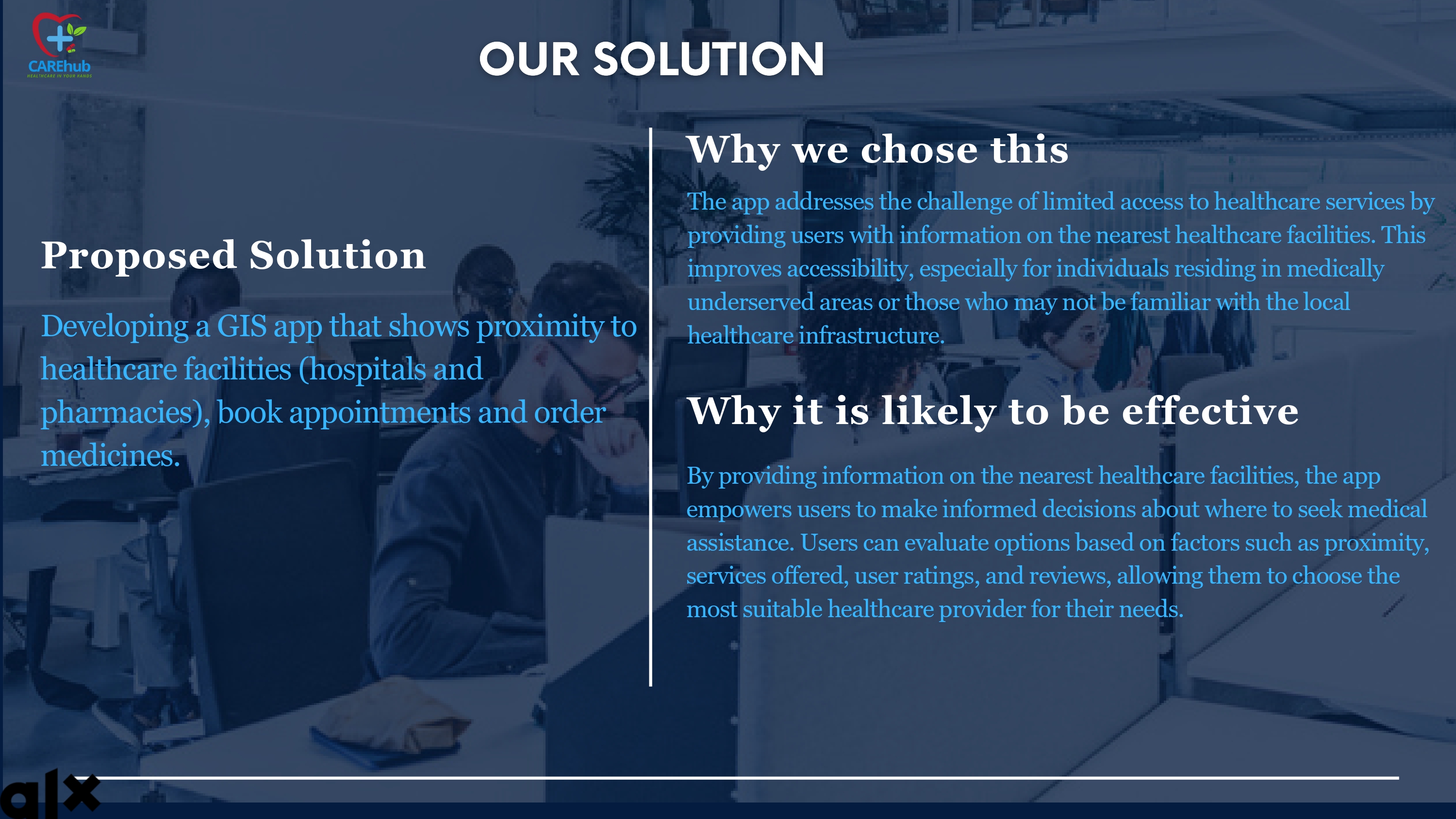 Developing a GIS app that shows proximity to healthcare facilities (hospitals and pharmacies), book appointments and order medicines.The app addresses the challenge of limited access to healthcare services by providing users with information on the nearest healthcare facilities. This improves accessibility, especially for individuals residing in medically underserved areas or those